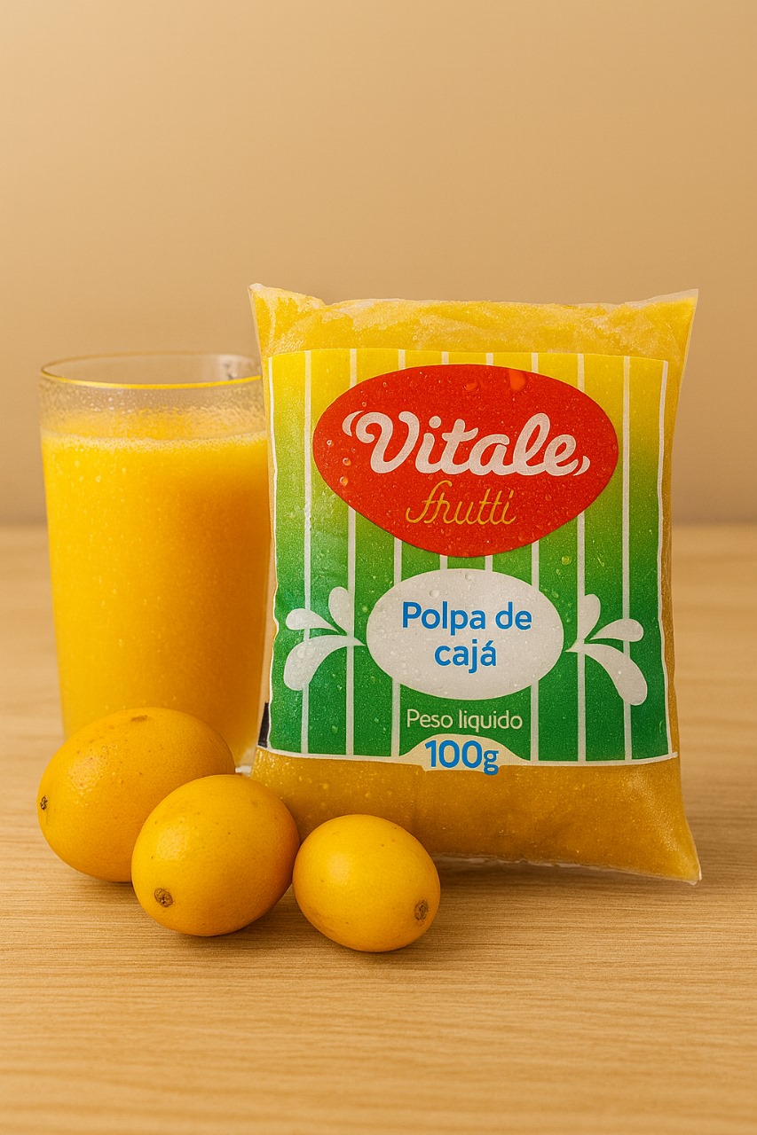 Polpa natural de CAJÁ, sem adição de açúcares, ideal para sucos e receitas.
