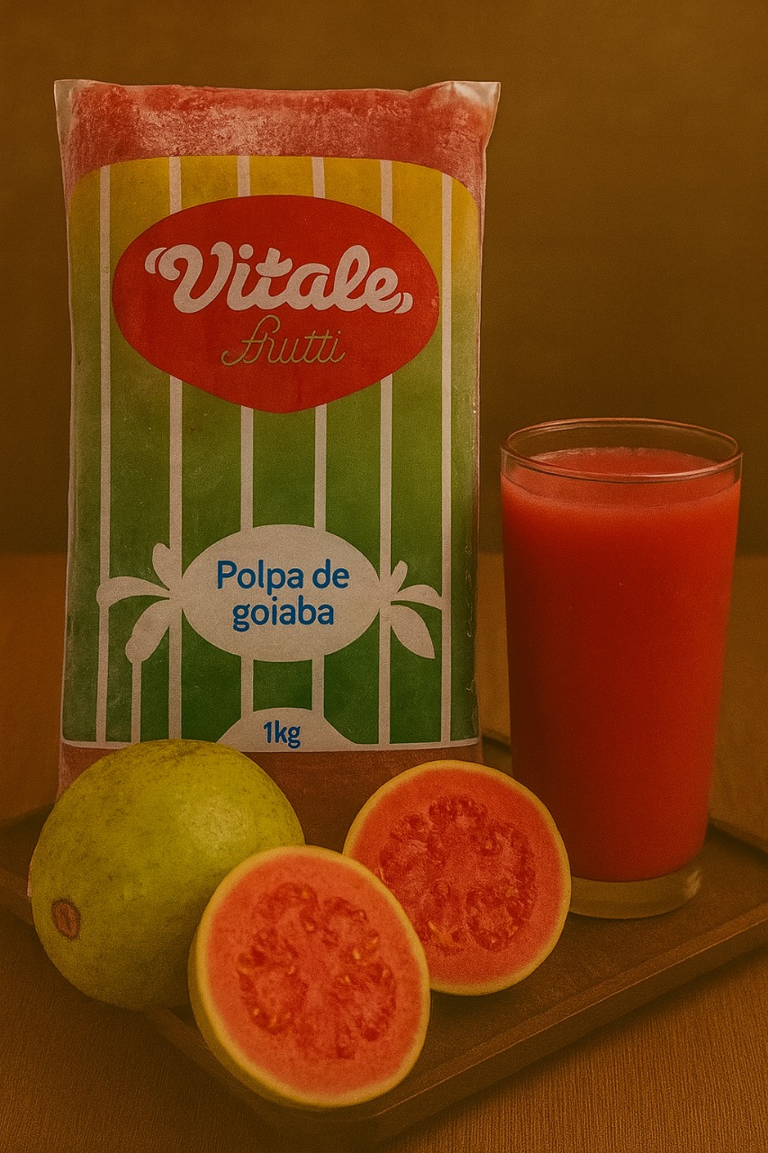 Polpa natural de GOIABA, sem adição de açúcares, ideal para sucos e receitas.