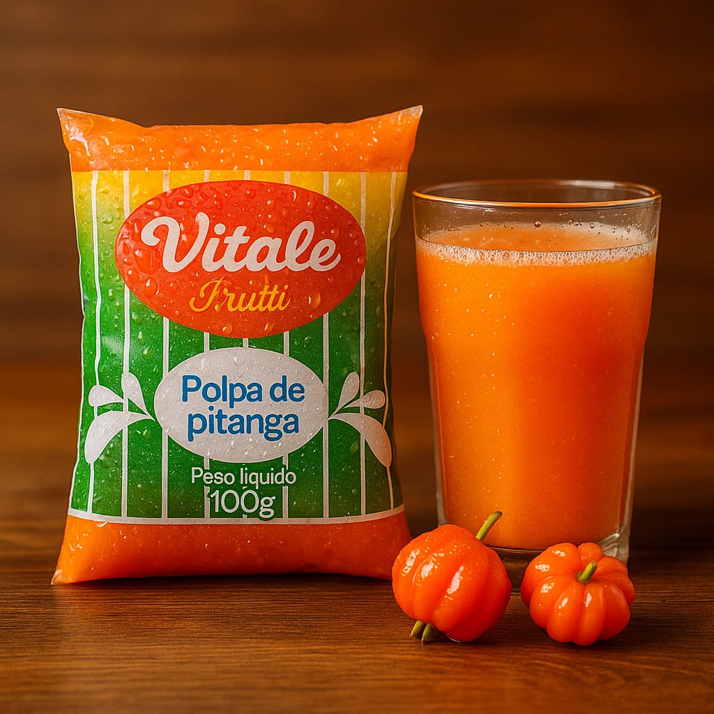 Polpa natural de PITANGA, sem adição de açúcares, ideal para sucos e receitas.